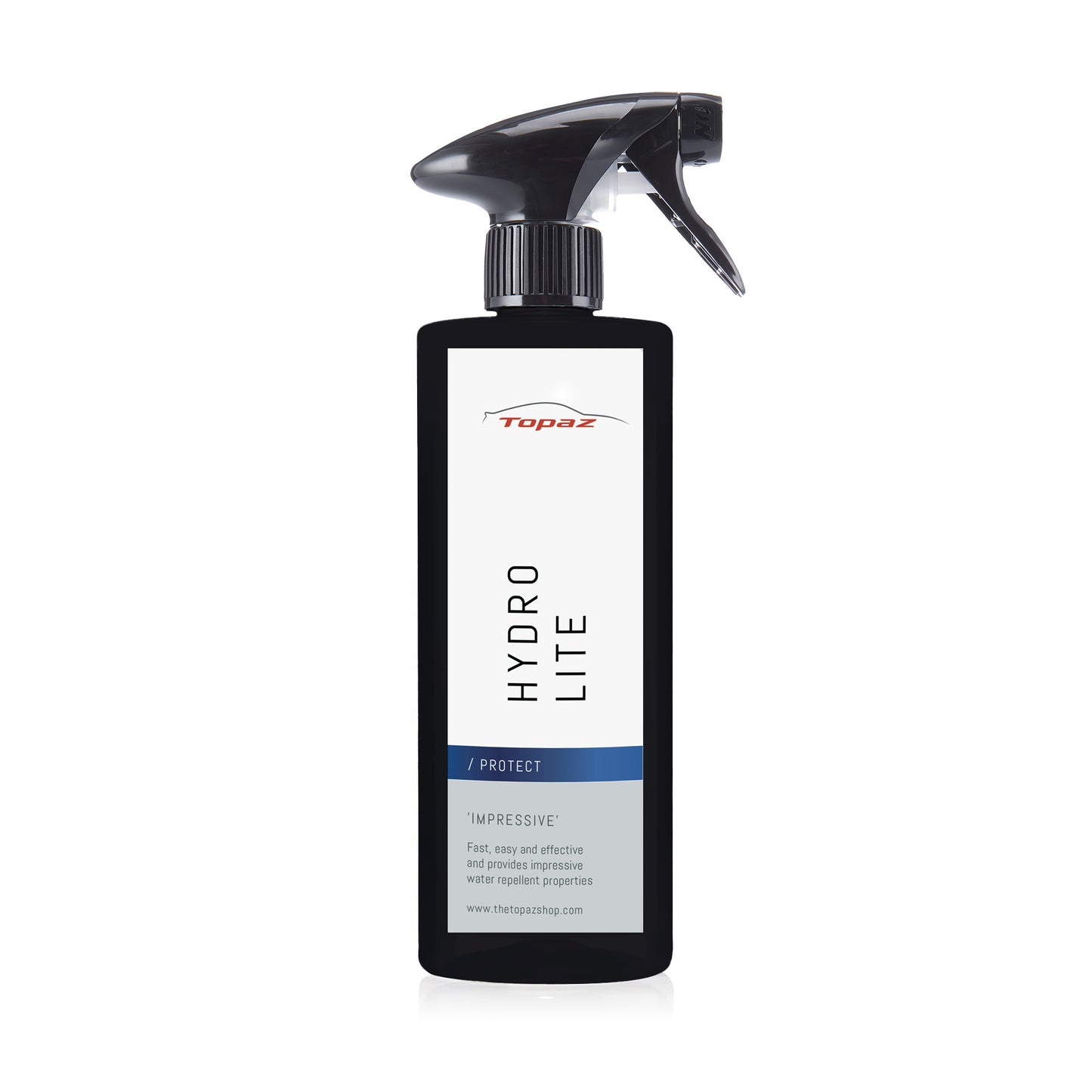 DIRECTIONS: Ensure the vehicle has been washed and rinsed prior to use. Spray Hydro Lite onto the wet vehicle’s body panels and wheels (avoiding the windscreen where possible). Rinse the vehicle with a pressure washer from top to bottom. Dry the vehicle using a Topaz Drying Towel.